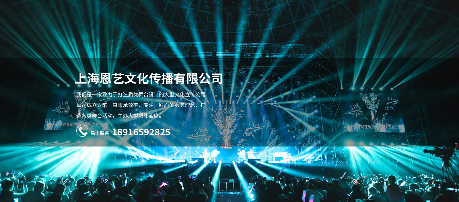 上海恩藝文化是一家致力于打造完美舞臺(tái)設(shè)計(jì)的大型文化傳播公司,專(zhuān)業(yè)打造各類(lèi)舞臺(tái)活動(dòng),主辦精品高峰論壇會(huì)議、大型報(bào)告會(huì)、大型奠基儀式、高檔公司年會(huì)、大型開(kāi)業(yè)慶典、高端品牌推介會(huì)、精品項(xiàng)目啟動(dòng)會(huì)、定制生日派對(duì)及各種慈善活動(dòng)等。